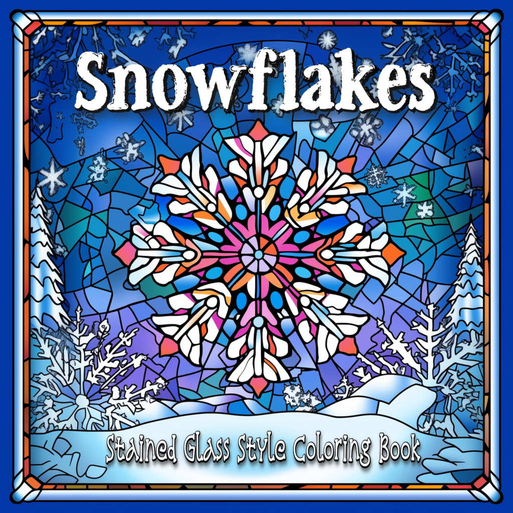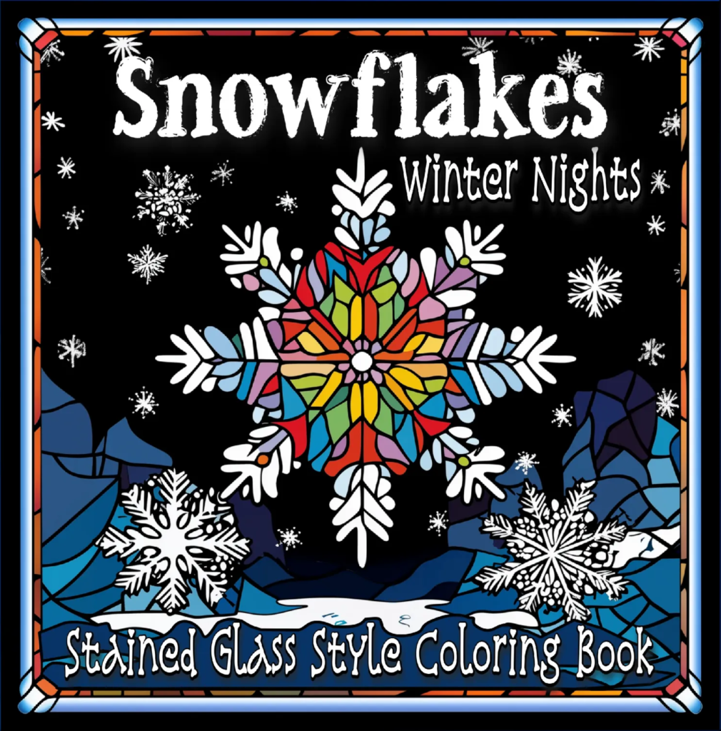 These are my newest seasonal coloring books in the winter Stained Glass Series, “Snowflakes Stained Glass Style.”