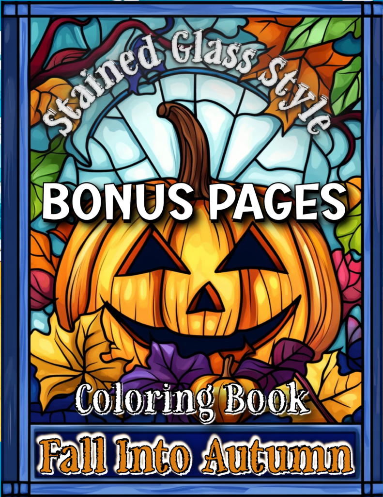 Sign up here to get an additional 10 free autumn stained glass coloring pages in the style of "Fall Into Autumn" Plus a future free gift after you've finished up with these pages 🙂