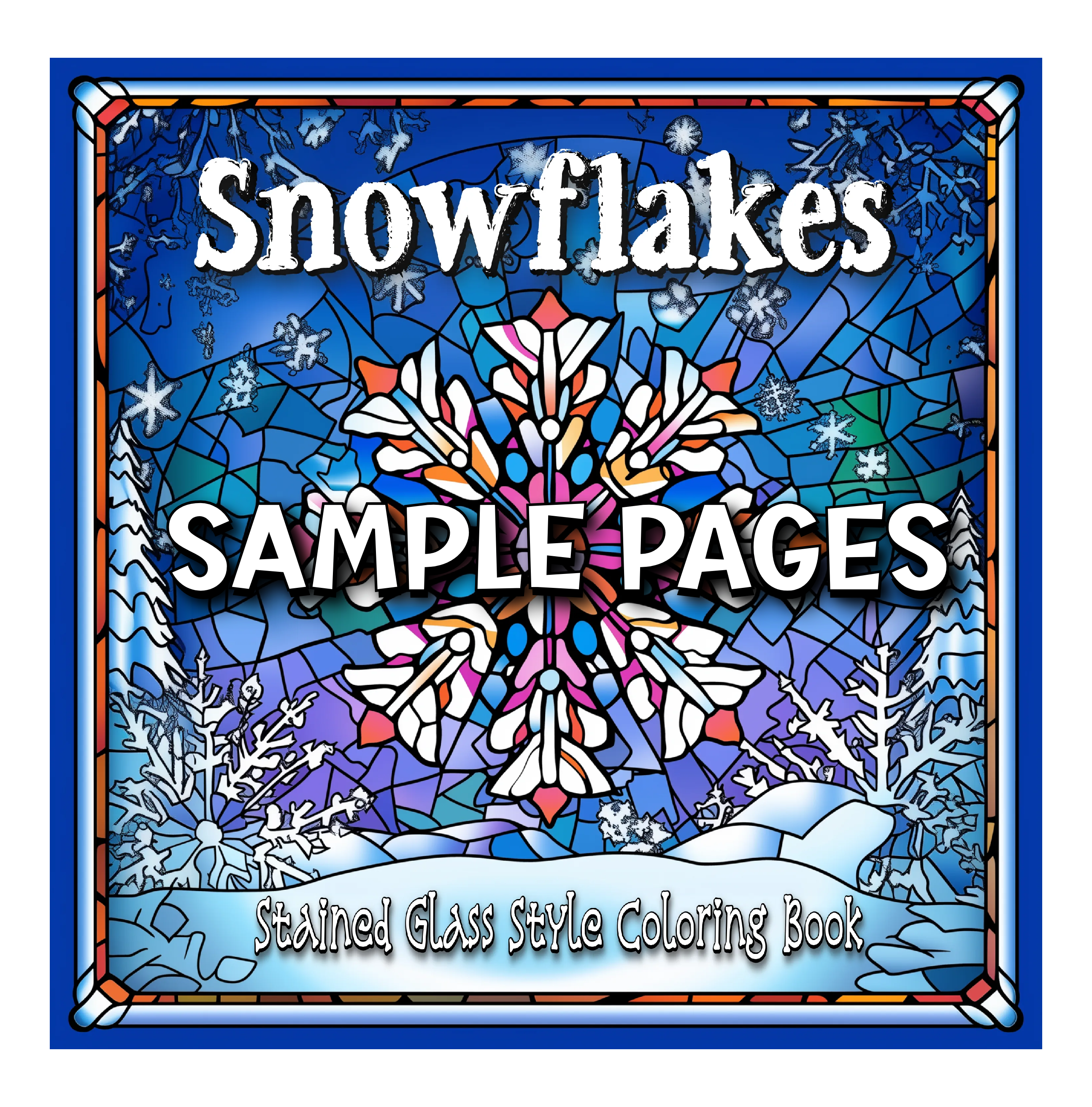 Snowflakes Sample Pages Thank you for your interest in “Snowflakes Stained Glass Style.” Click below to access your 5 free sample pages. Enjoy! Click here to start coloring 🙂