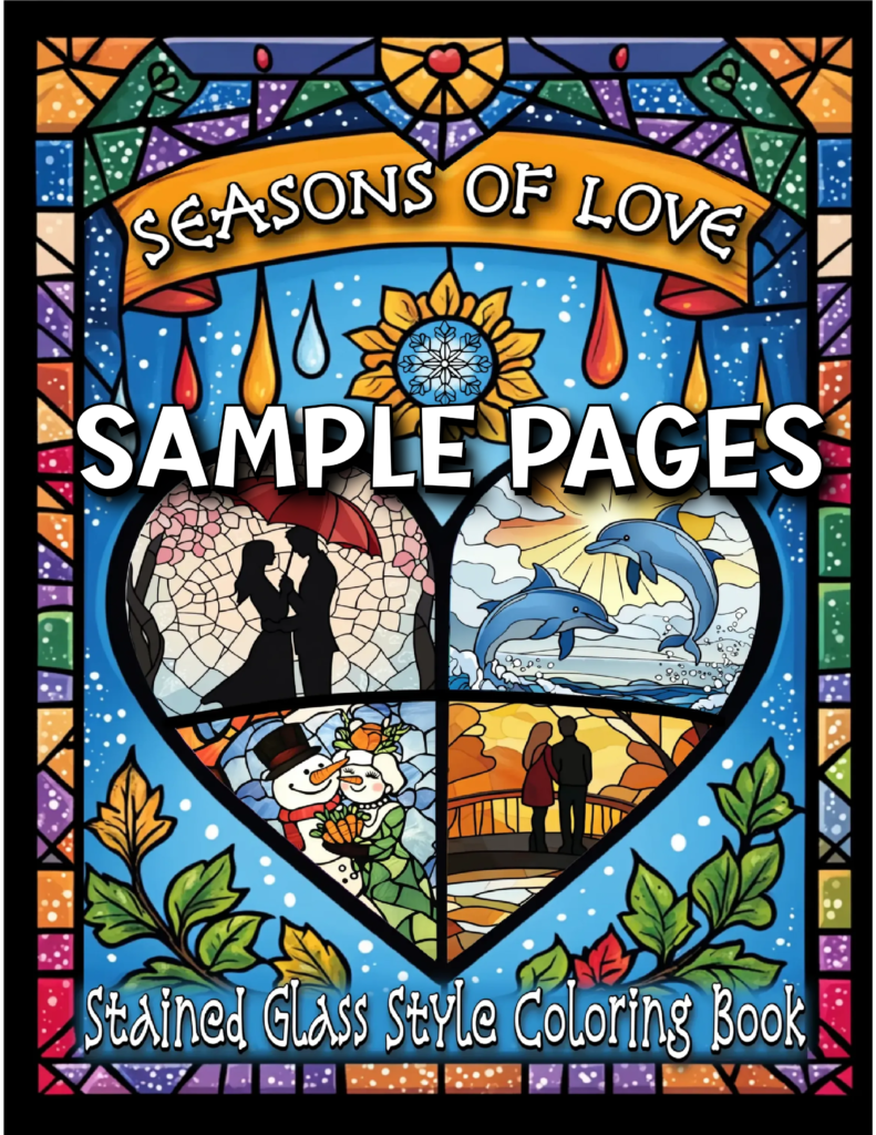 Thank you for your interest in “Seasons Of Love Stained Glass Style.” Click below to access your 5 free sample pages. Enjoy!